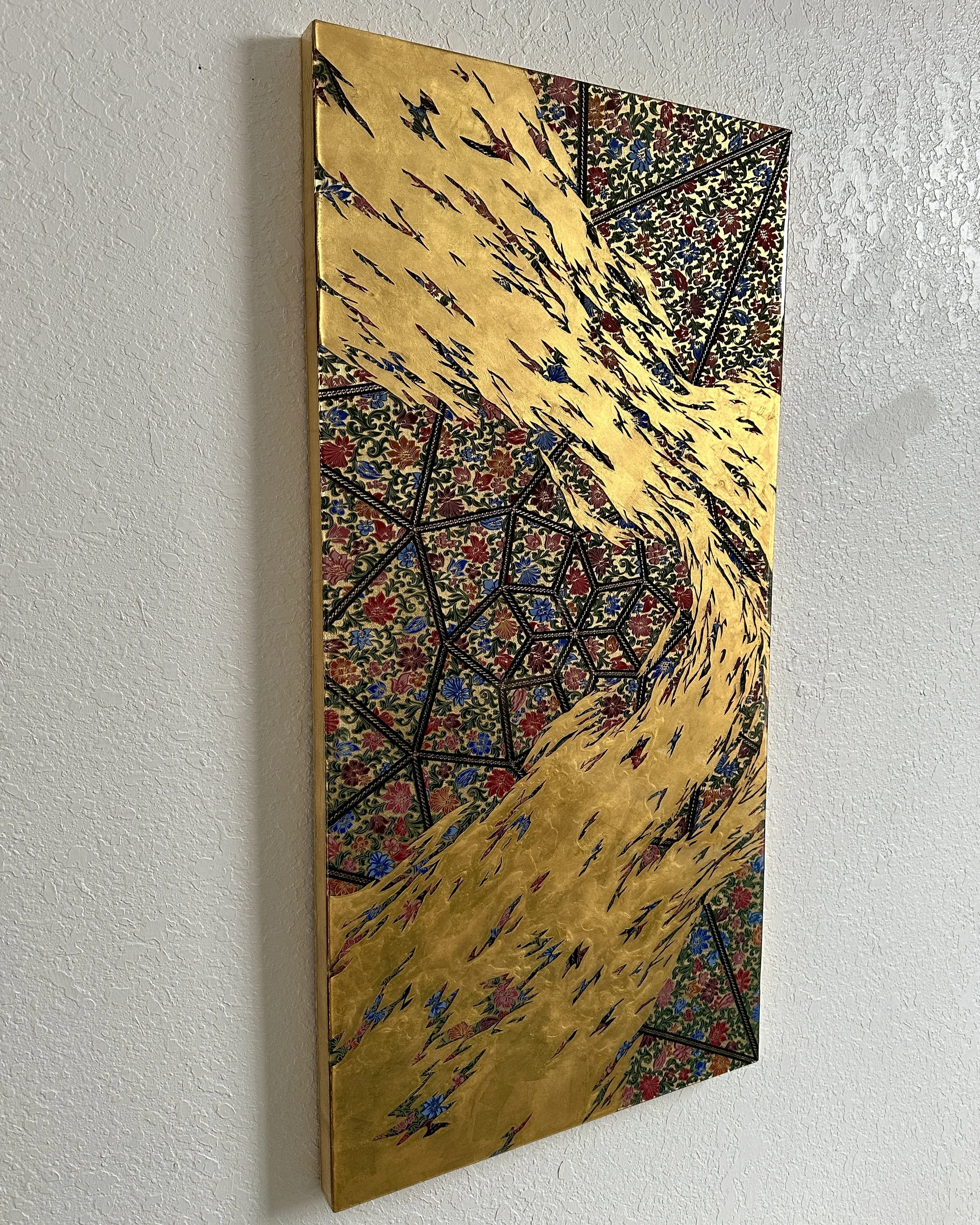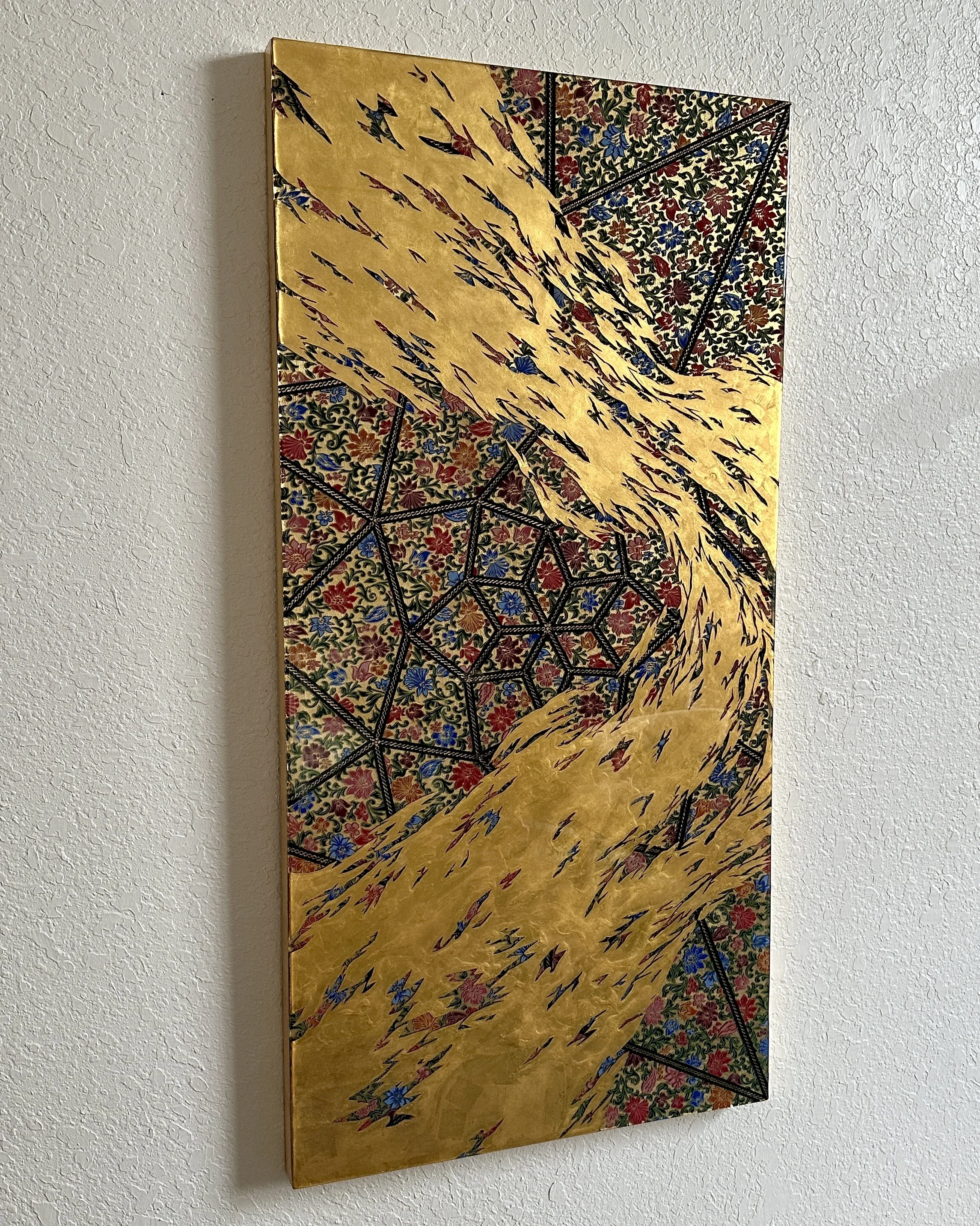 24” X 48” Layered resin, acrylic and 24k gold leaf mounted on wood